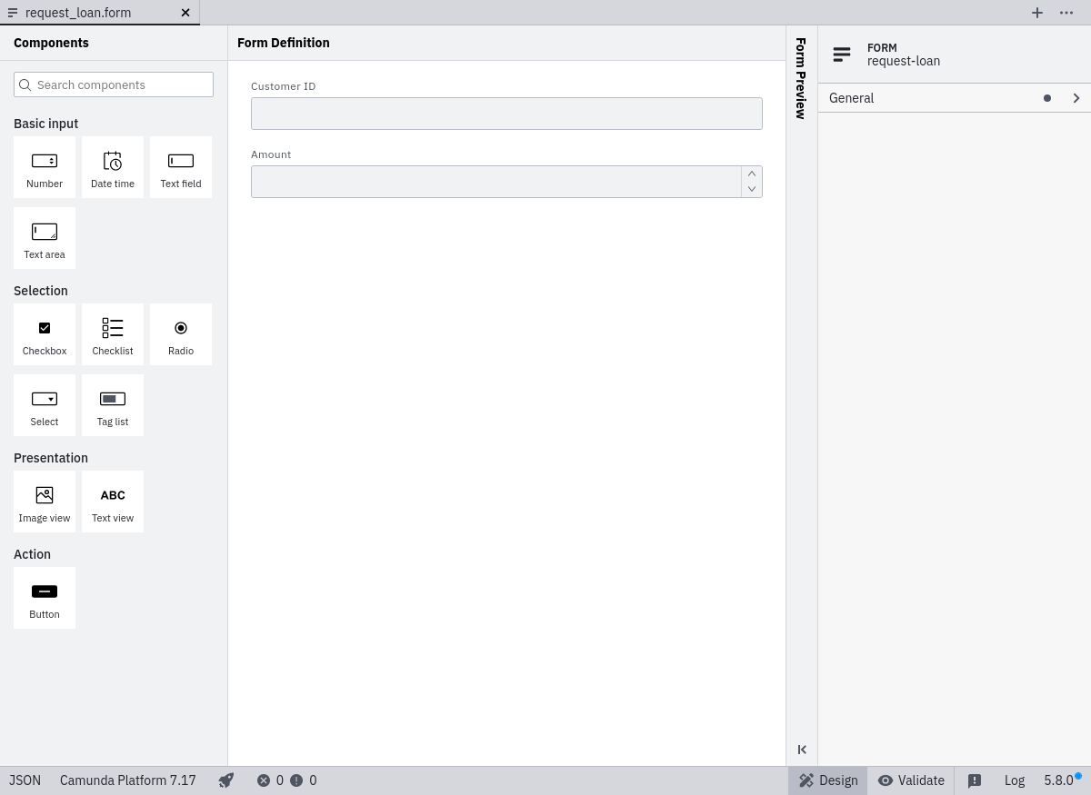 Create a new form in CadenzaFlow Modeler and set its id to request-loan.