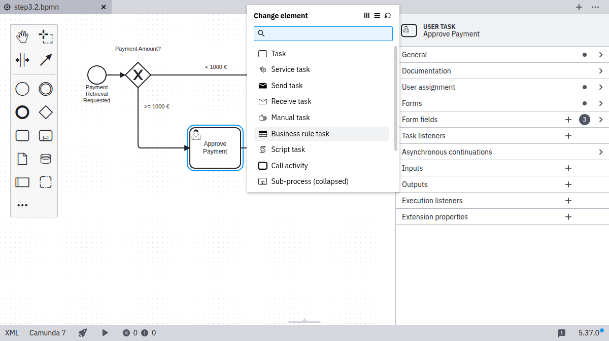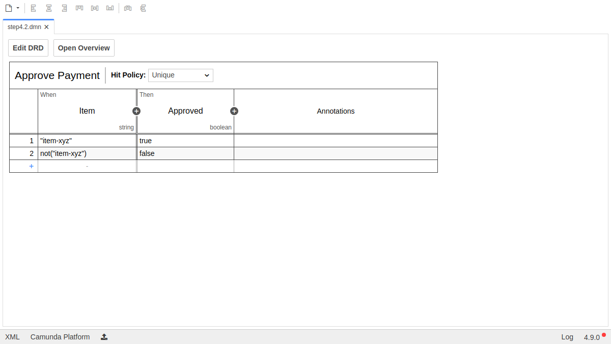 In this section, you’ll learn how to add decision automation to your process by using BPMN 2.0 Business Rule Tasks and DMN 1.3 Decision Tables.