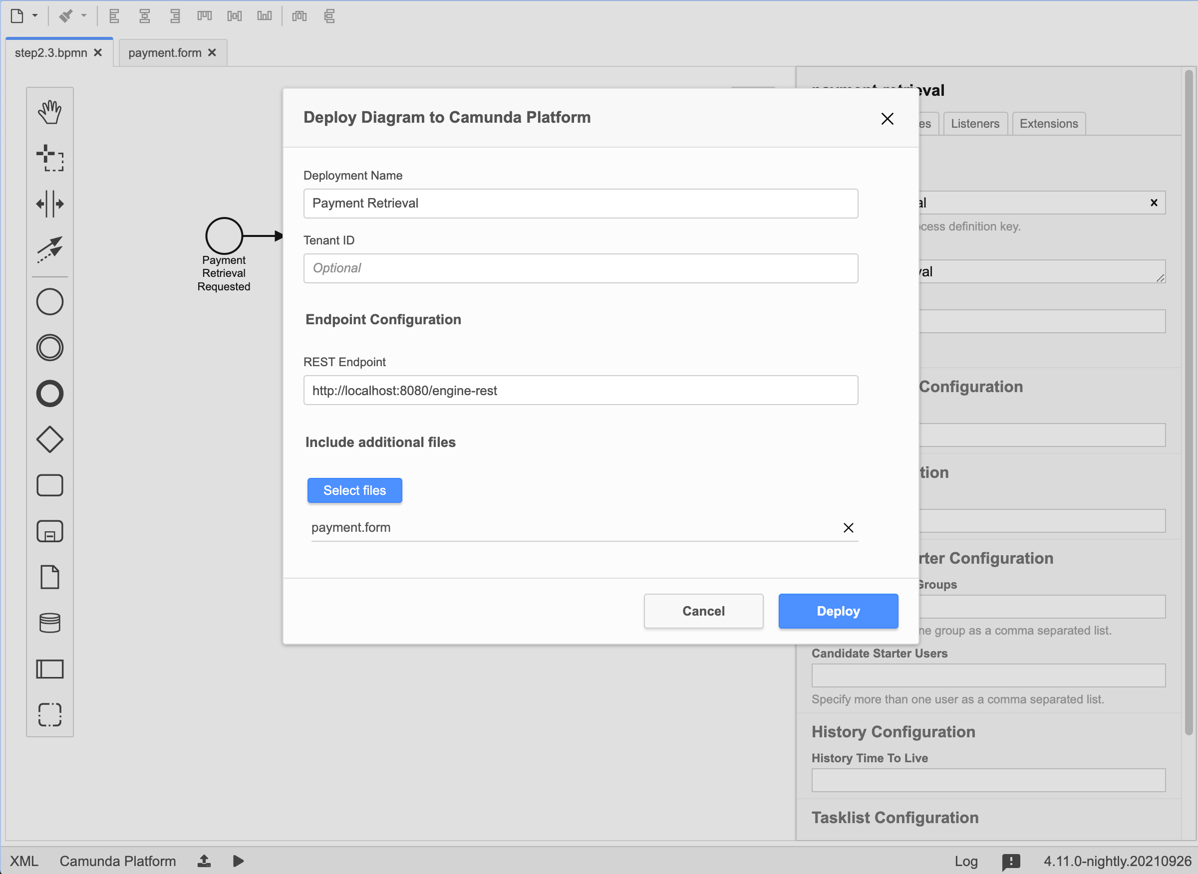 - Click the Deploy button in the CadenzaFlow Modeler
