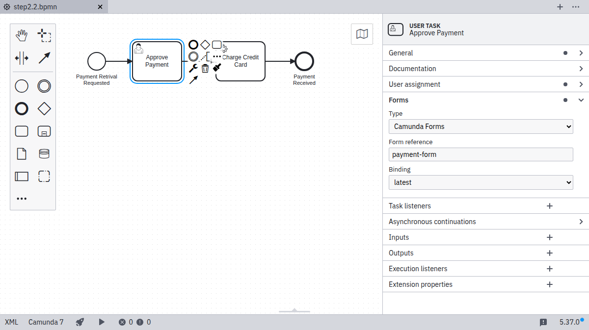 In this section, you’ll learn how to involve humans in your process by using BPMN 2.0 User Tasks.