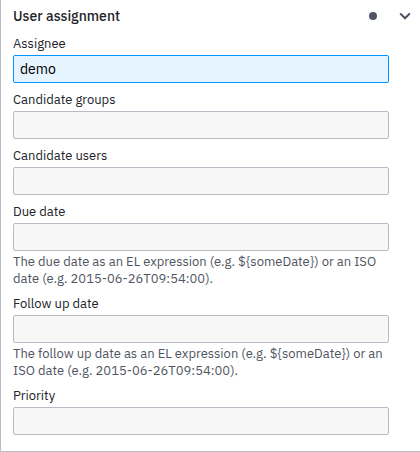 Type demo to automatically assign the task to the demo user once the process runs.