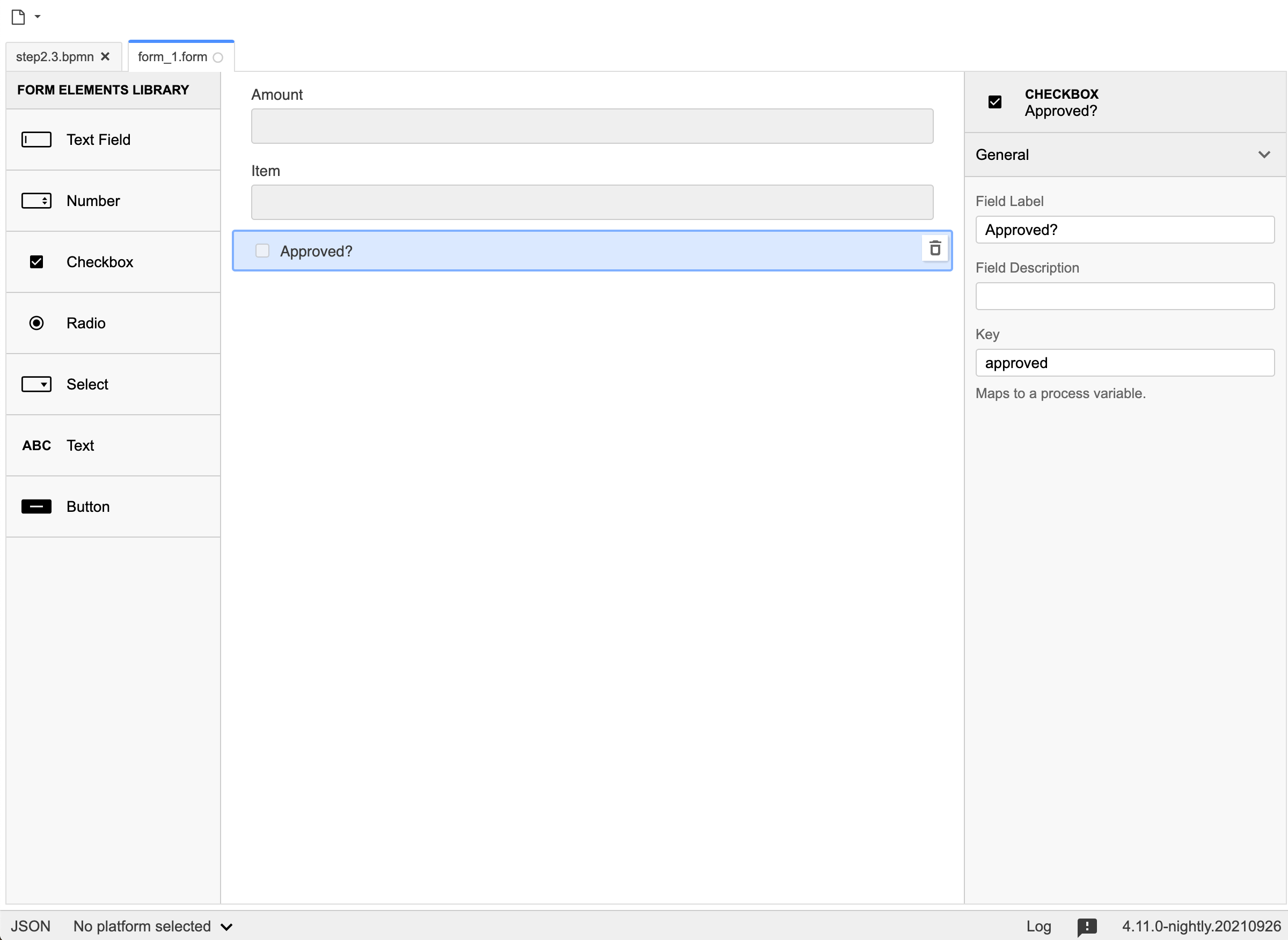 This guide uses CadenzaFlow Forms to add a form to the process.