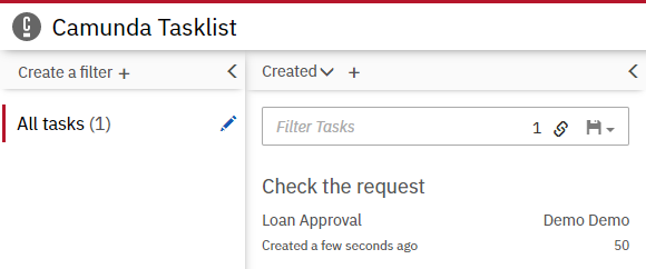 If you rebuild and restart the application, you should see the task “Check the request” in Tasklist under the “All tasks” filter: