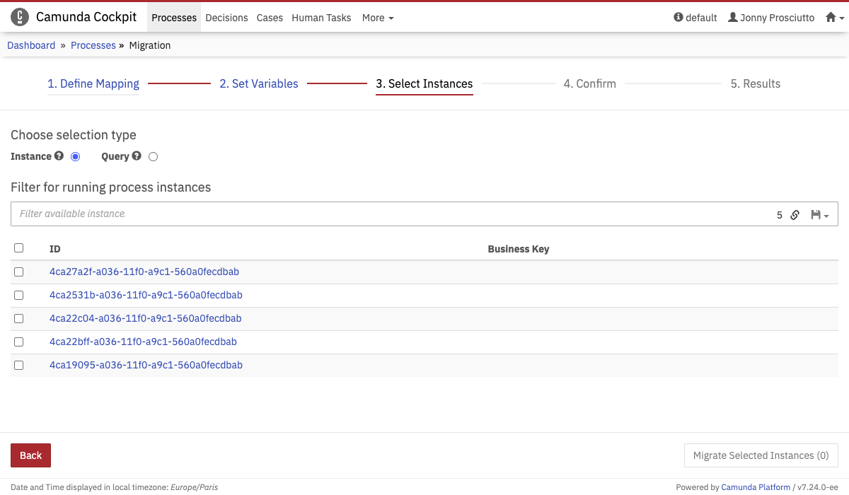 If you do not explicitly select any instances, all instances of the source process definition version are migrated to the target version.