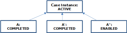 This case contains two human tasks A and B that are connected by a sentry. Task B gets ENABLED