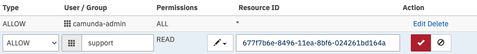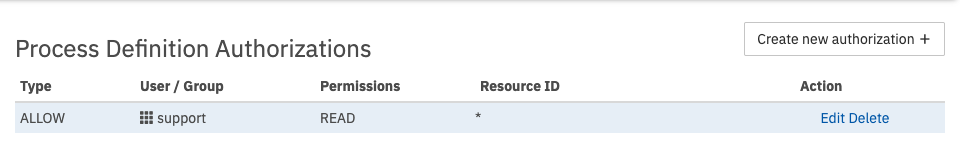 permission for every resource id (indicated by the asterisk) for the group, e.g., in the screenshot for all process definitions.