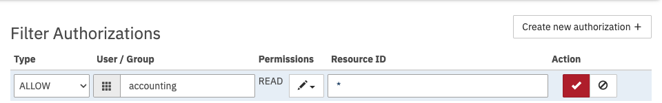 permission for every possible resource and resource id. For example, to grant the accounting group all permissions for authorizations the following entry has to be made: