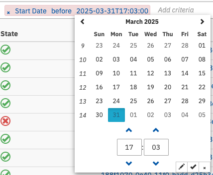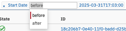 Add a filter for process instances by start date. Please note that the date must be set in accordance to the ISO 8601 standard.