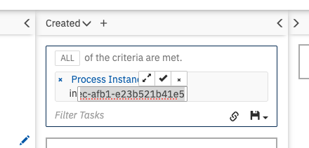 Above the filter results, you have the option of searching for user tasks within the selected filter results. To do so, click in the search box and select the parameters to search for. You can also begin typing to find the required parameter faster. Depending on the selected property, you have to specify the value of the property. Some properties also allow operators other than equal, e.g., 'like'